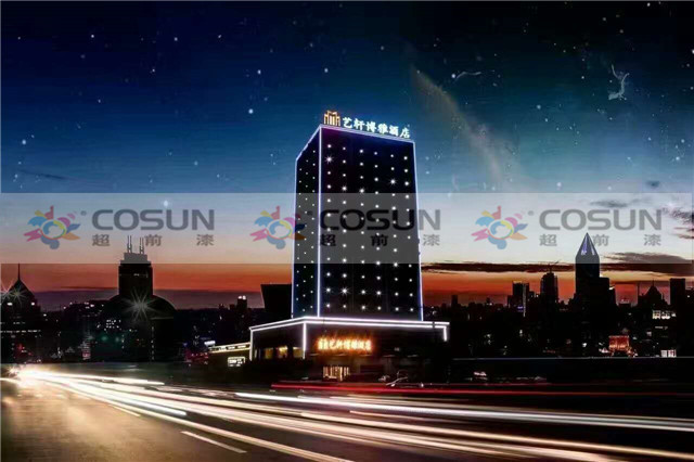 超前涂料 CCTV黃金展位合作伙伴山西臨汾侯馬藝軒酒店工地面積5000平方,超前外墻真石漆,以絕對(duì)的質(zhì)量優(yōu)勢,成為該酒店指定的多彩真石漆供應(yīng)商。也是該酒店錦上添花的一次完美合作。